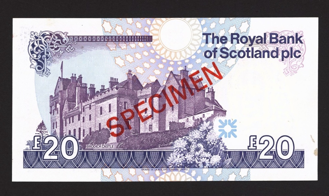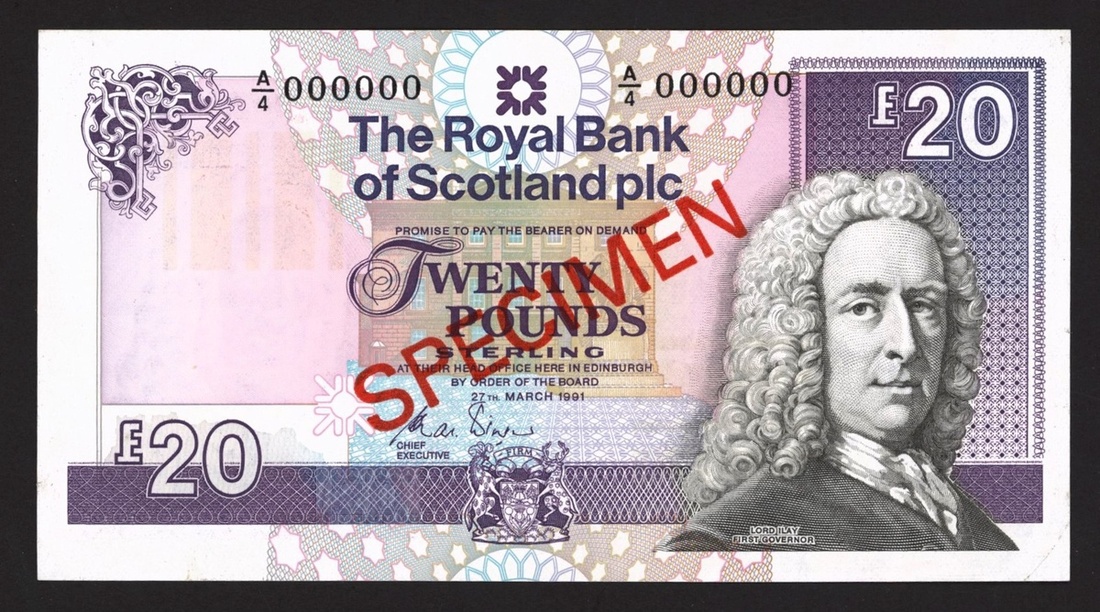 Royal Bank of Scotland Plc, specimen £20, 27 March 1991, serial number A/4 000000, signature Winter,