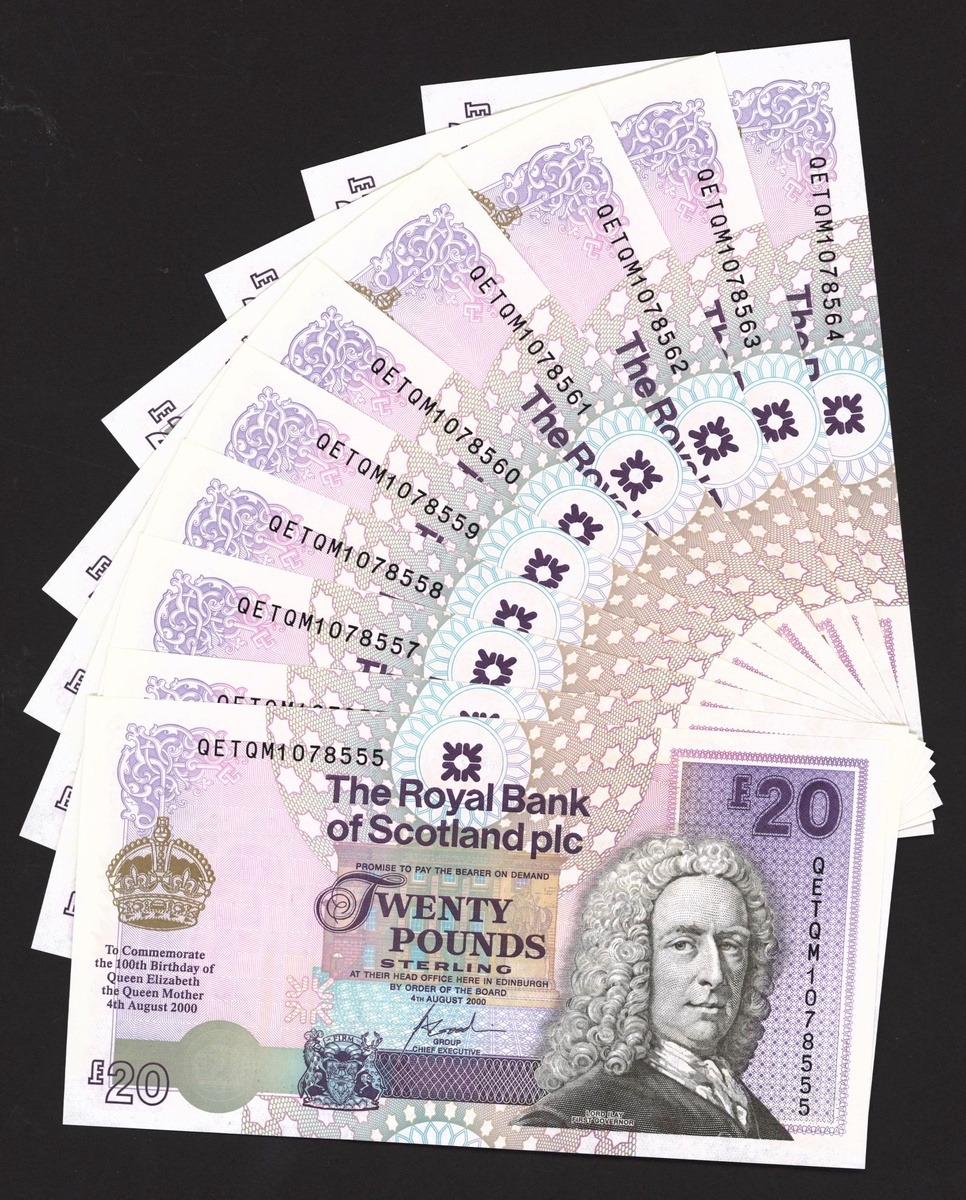 (x) Royal Bank of Scotland Plc, commemorative £20 (10), 2000, prefix QETQM, (PMS RB106), uncirculated, popular type (10 notes)