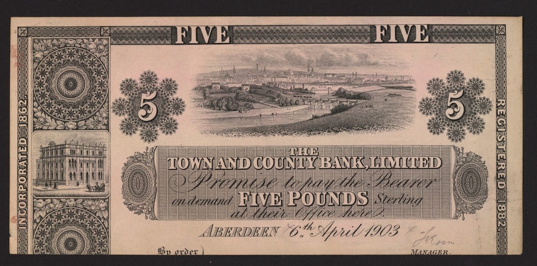 Town and County Bank Limited, Scotland, cut cancelled proof £5, 6 April 1903, (PMS TB12b for type), previously mounted, about uncirculated