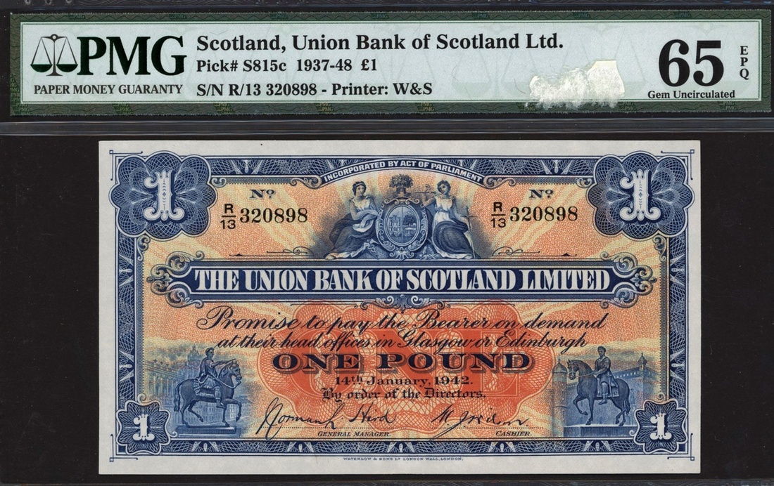 (x) Union Bank of Scotland, £1, 14 January 1942, serial number R/13 320898, (PMS UB63e), in PMG holder 65 EPQ Gem Uncirculated, rare in this grade with only 1 higher grade example