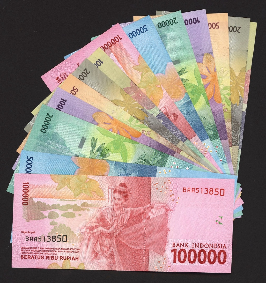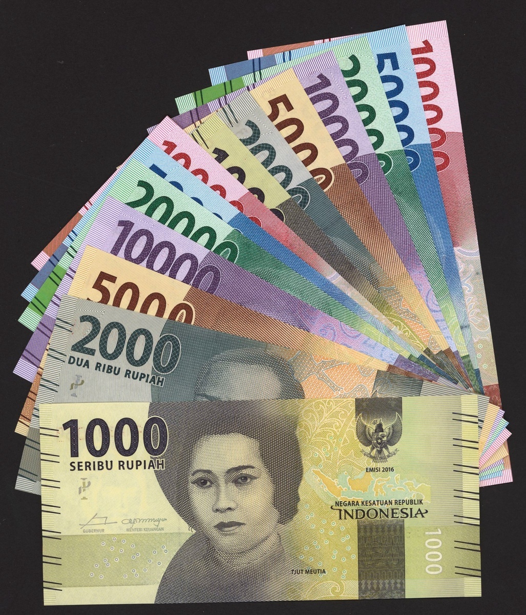 (x) Bank Indonesia, two complete sets of the 2016-21 issues, including 1000, 2000, 5000, 10,000, 20,000, 50,000, 100,000 rupiah, (Pick 154-160), uncirculated (14 notes)