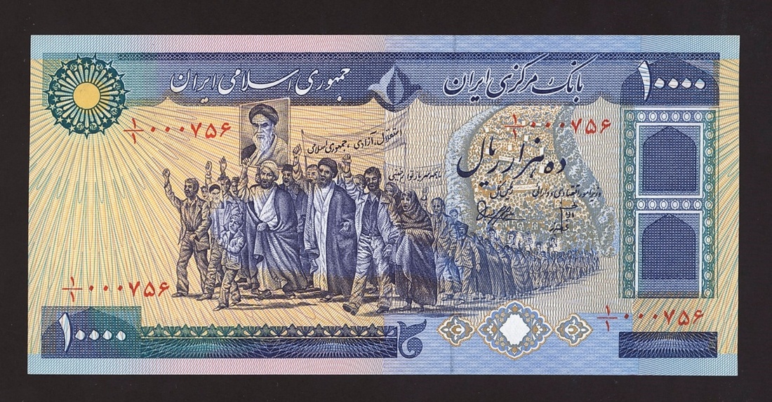 Islamic Republic of Iran, 10,000 rials, 1981, serial number 000756, (Pick 134a, B274a), uncirculated, low serial number.