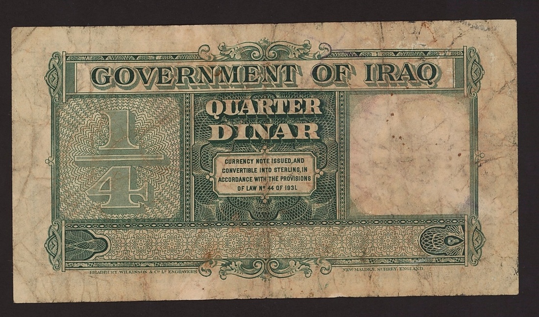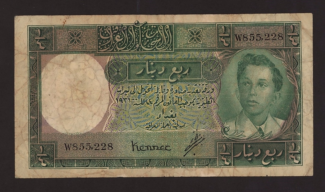 Government of Iraq, 1/4 dinar, L.1931 (1948), serial number W855,228, (Pick 22, BNB B124), about fine, rare type