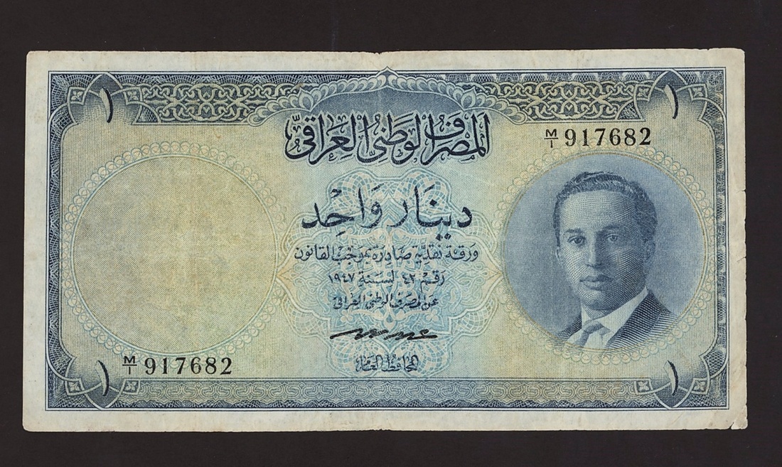 National Bank of Iraq, 1 dinar, 1955, serial number M/1 917682, (Pick 39a), fine