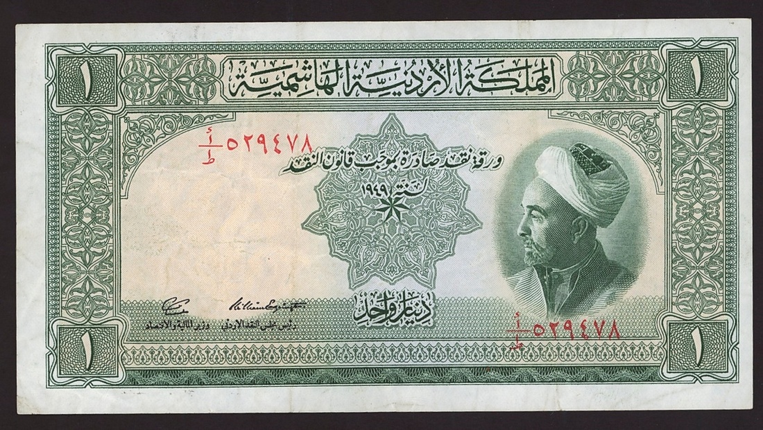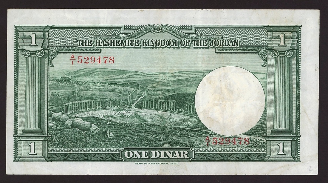(x) The Hashemite Kingdom of the Jordan, 1 dinar, 1949, serial number A/1 529478, (Pick 2b), about very fine