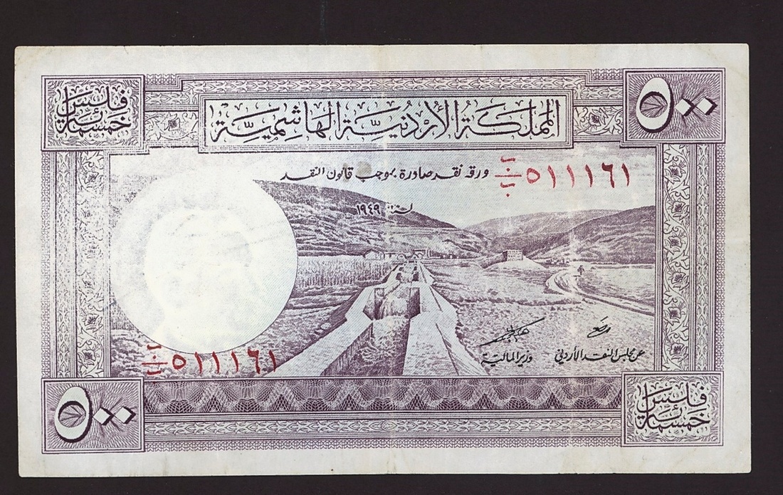 (x) The Hashemite Kingdom of Jordan, 500 fils, 1949, serial number 011161, (Pick 5Ab), fine