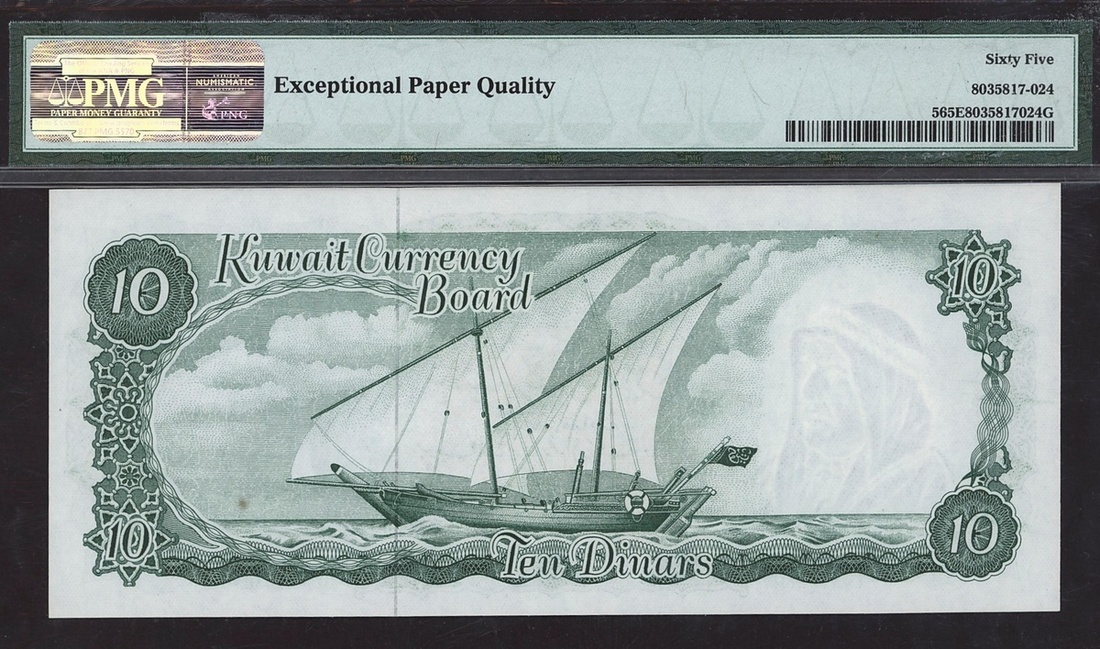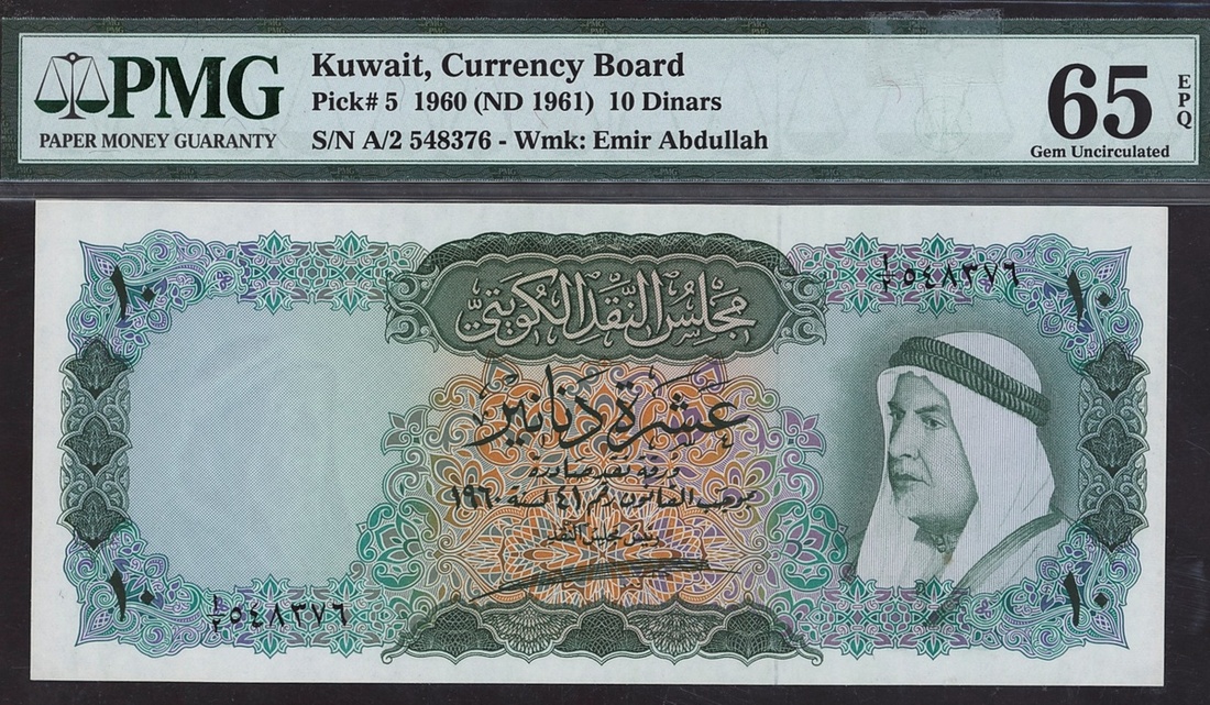 (x) Kuwait Currency Board, 10 dinars, 1960 (ND 1961), serial number A/2 548376, (Pick 5), in PMG holder 65 EPQ Gem Uncirculated