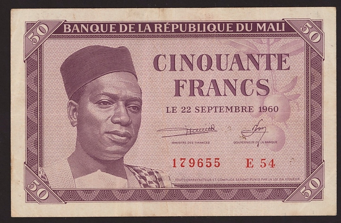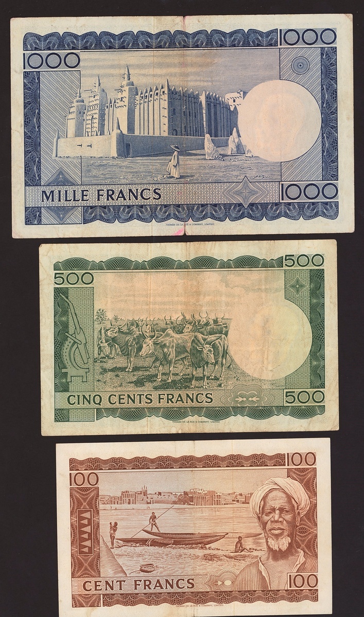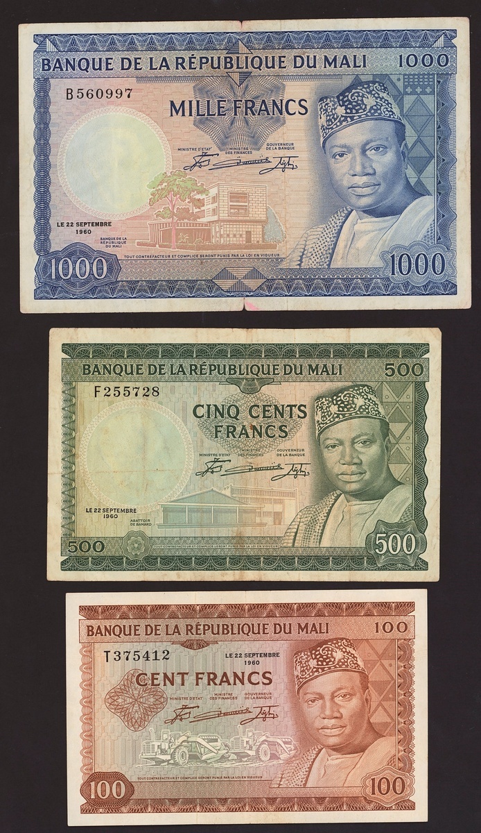 Banque de la Republique du Mali, 1000 francs. 22 September 1960, serial number B560997, also 50, 100 and 500 francs, 1960,
