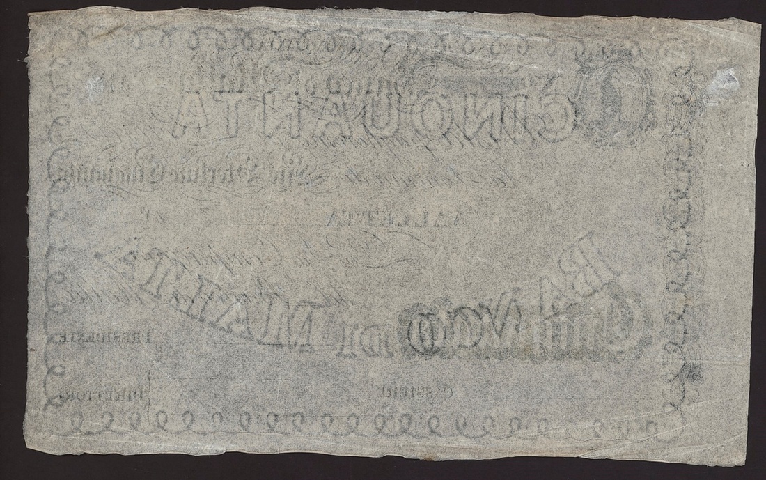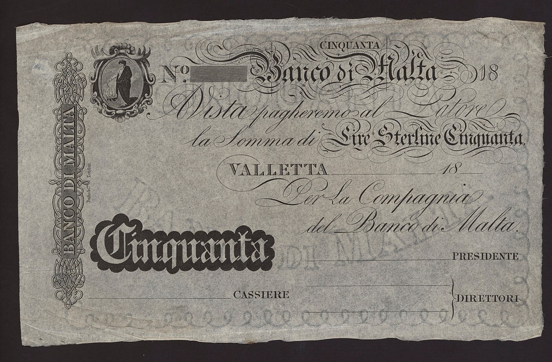 Banco di Malta, remainder 50 lire, 18-. uniface,