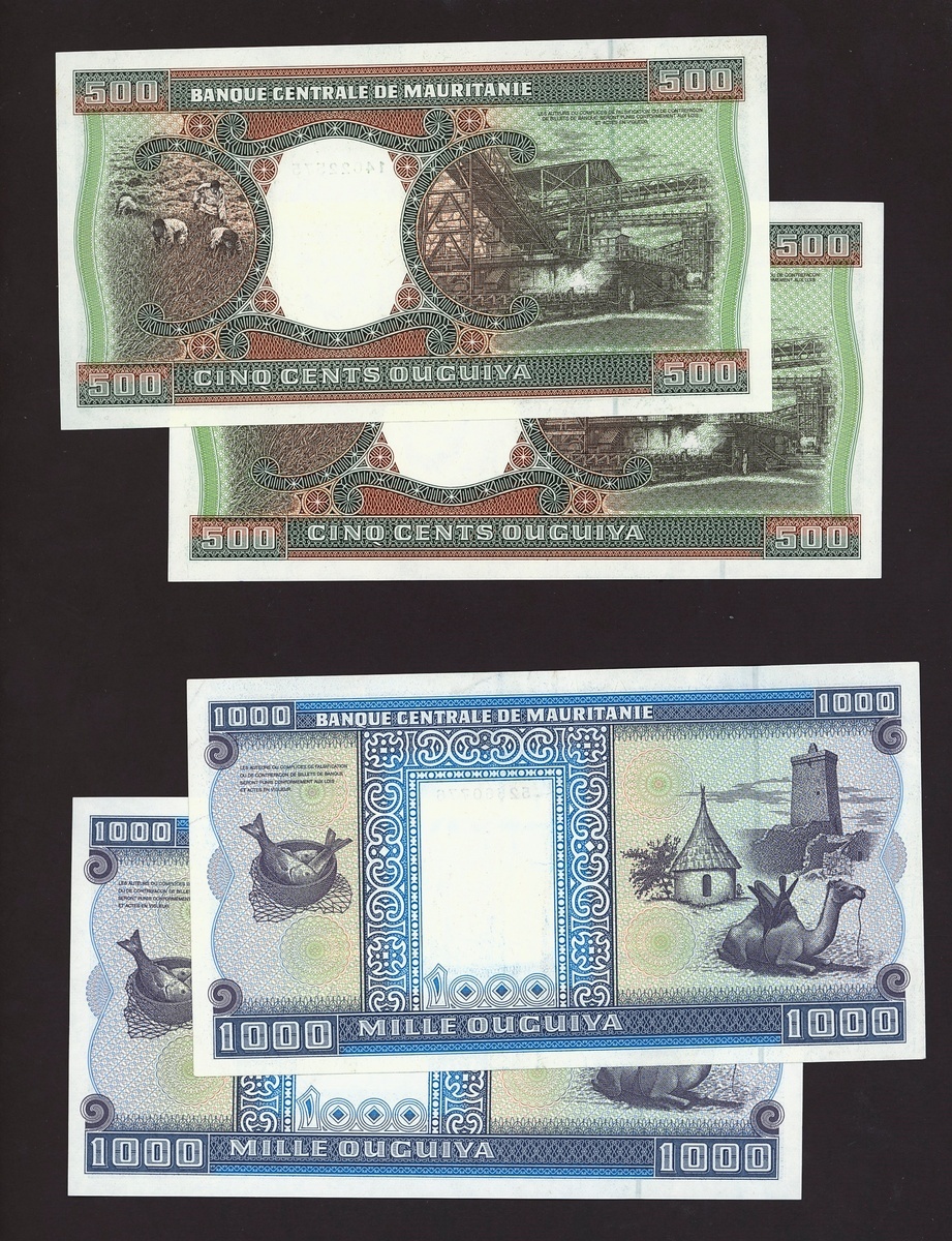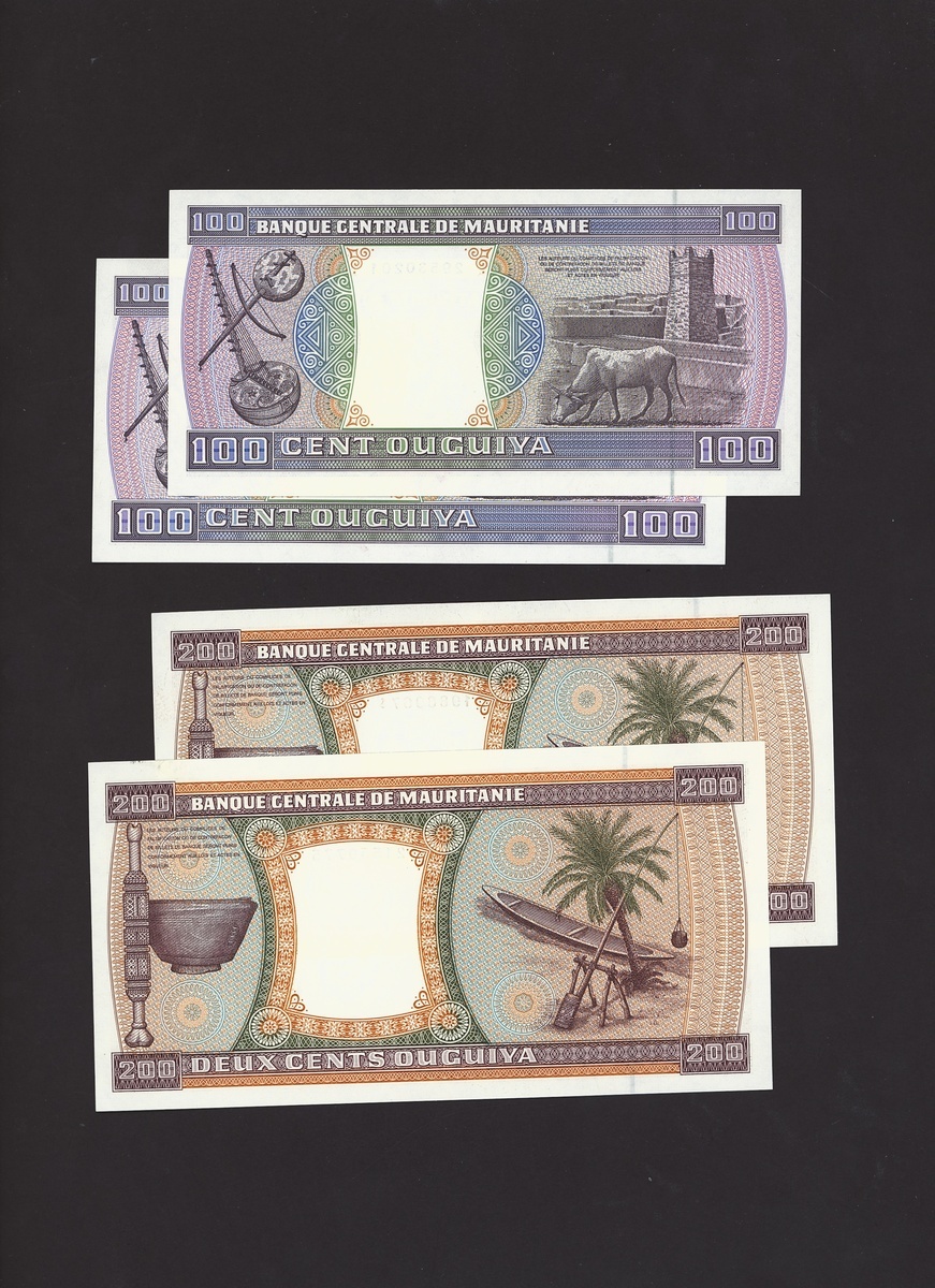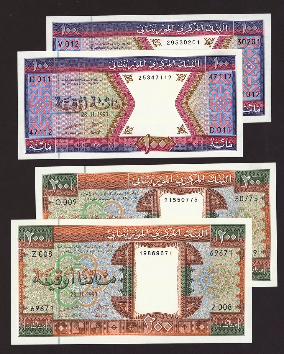 (x) Banque Centrale de Mauritanie, two sets of the 1993 series comprising 100, 200, 500 and 1000 ouguiya, Michel signature