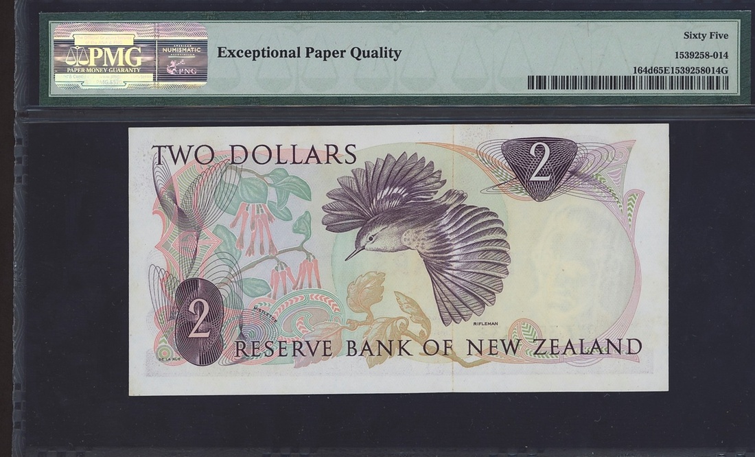 (x) Reserve Bank of New Zealand, 2 dollars, ND (1977-81), serial number 9Y3352743, (Pick 164d), in PMG holder 65 EPQ Gem Uncirculated