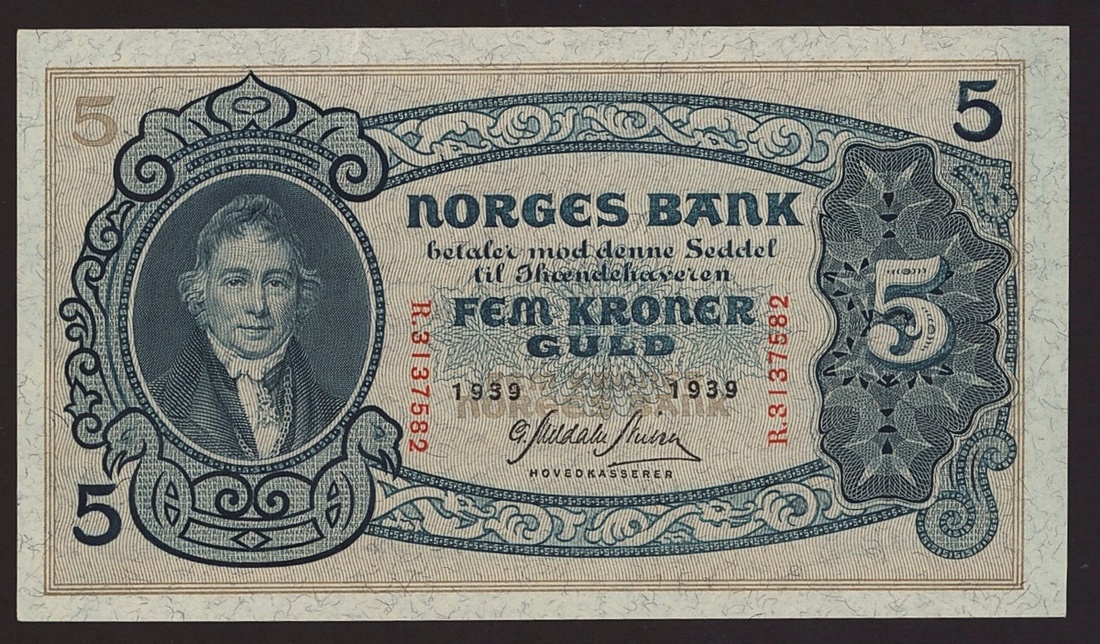 Norges Bank, 5 kroner, 1935, serial number R.3137582, (Pick 7c), uncirculated