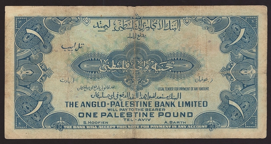 (x) Anglo-Palestine Bank Limited, 1 pound, ND (1948), serial number B927893, (Pick 15), pinholes, pressed, fine