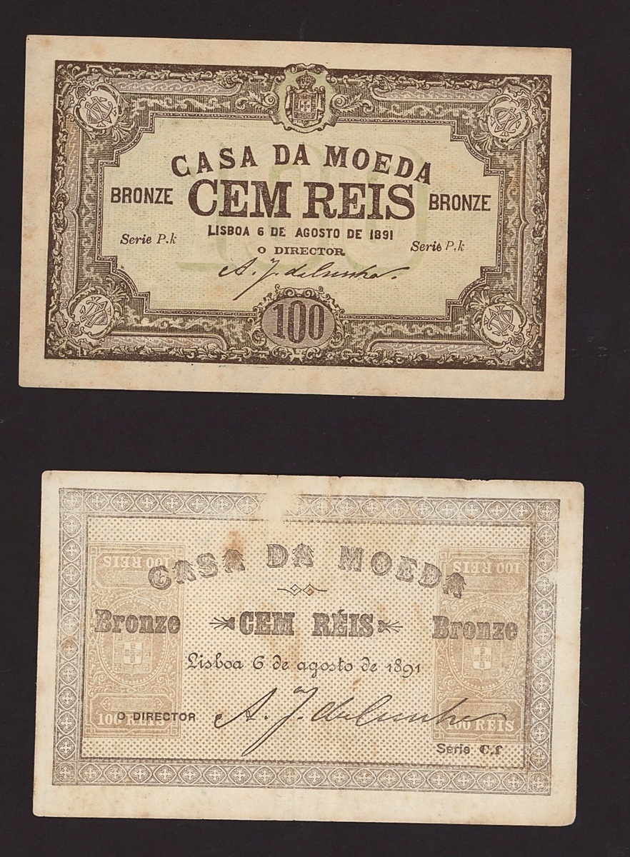 (x) Casa de Moeda, 100 reis, 6 August 1891 (2), one light brown and one dark brown example