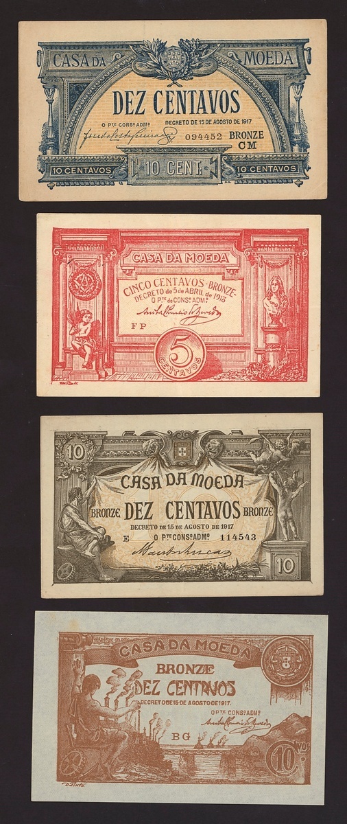 (x) Casa da Moeda, a group of small denomination of the early series, comprising 5 centavos (2), 10 centavos (4)