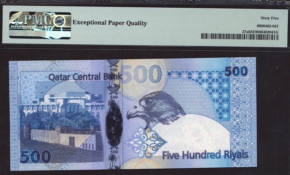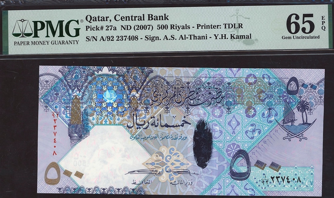 (x) Qatar Central Bank, 500 riyals, ND (2007), serial number A/92 237408, (Pick 27a), in PMG holder 65 EPQ Gem Uncirculated