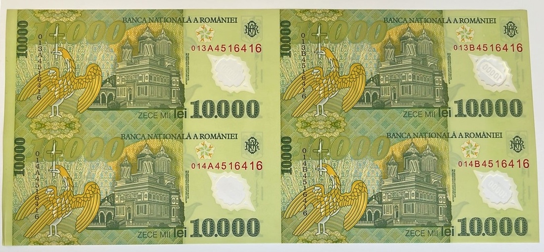 (x) Banca nationala a Romaniei, a sheet of polymer 10,000 lei, 2000, (Pick 112b), uncirculated