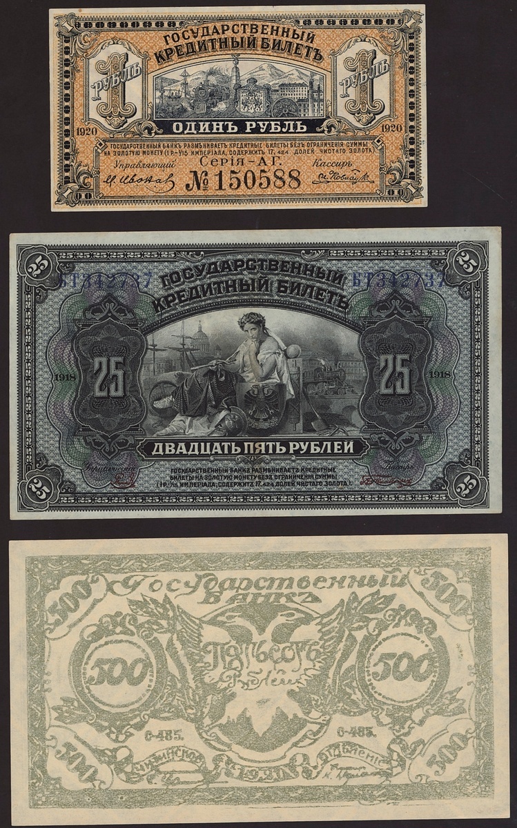 (x) East Siberia, Russia, 500 rubles, 1920, 1, 25 rubles, 1920,