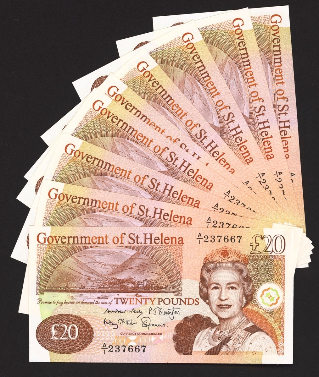 Government of St. Helena, consecutive £20 (10), 2012, serial numbers A/1 237667-76, (Pick 13b, BNB 309b), about uncirculated (10 notes)