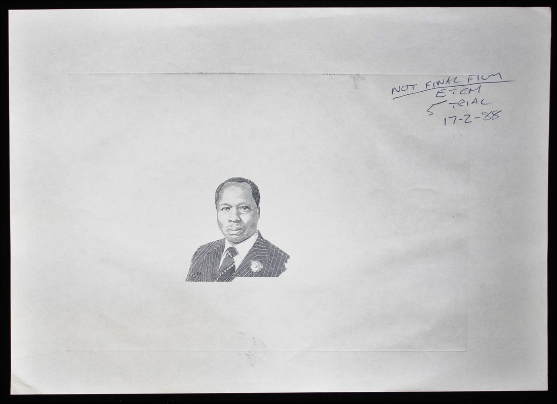 Central Bank of Kenya, a vignette of president Daniel arap Moi, 1988, pen annotation at top right, vignette 60 x 57mm, printed on A4 size paper