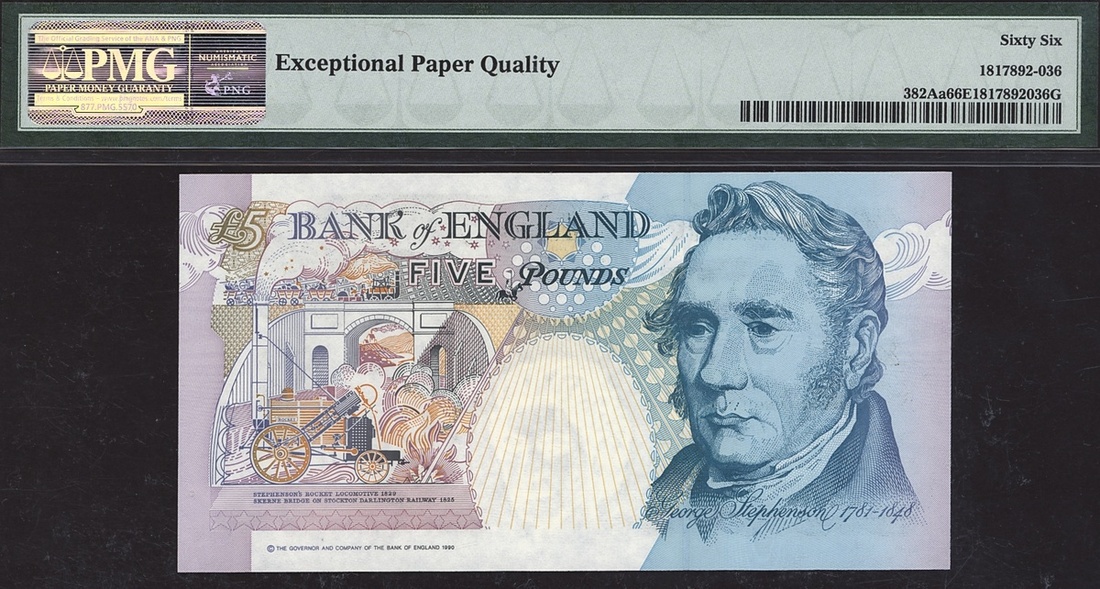 Bank of England, Great Britain, 5 pounds, ND (1991-98), serial number DA04 475593, (Pick 382Aa), in PMG holder 66 EPQ Gem Uncirculated