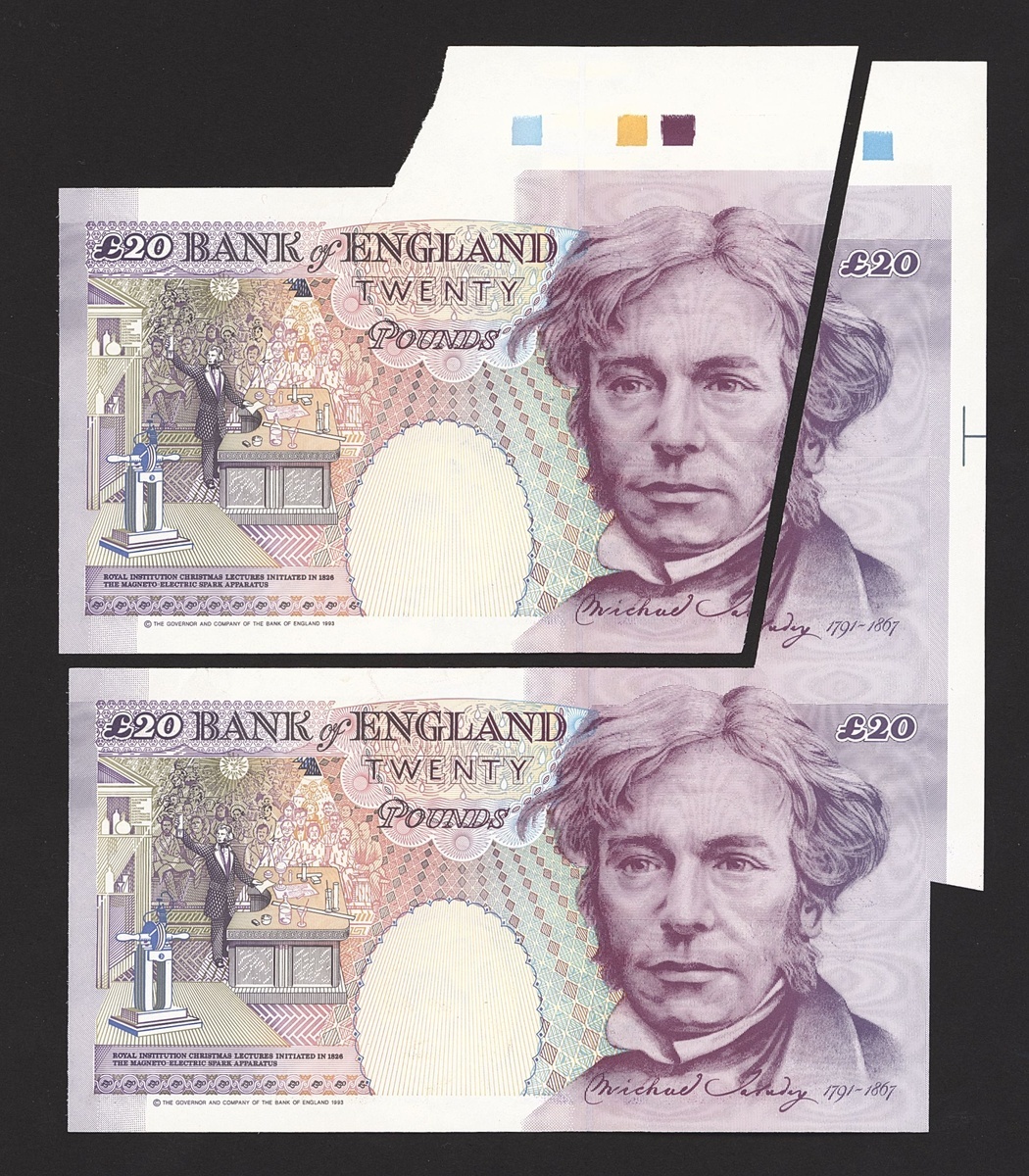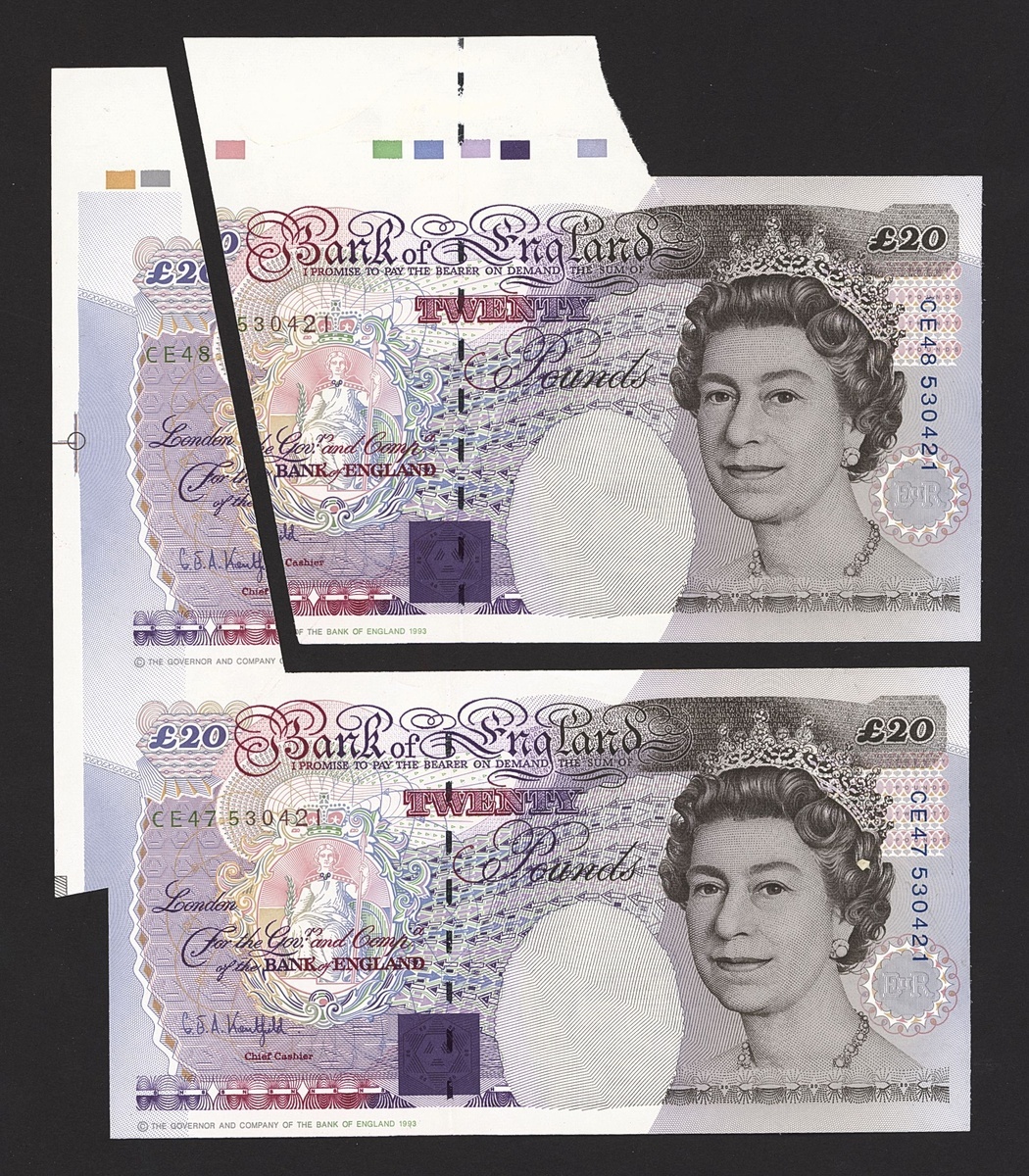 Bank of England, error 20 pounds, 1993, serial number CE48530421, (Pick 387a), uncirculated (2 parts)