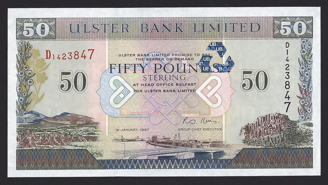 Ulster Bank Limited, Northern Ireland, 50 pounds, 1997, serial number D1423847, (PMI UB 94, Pick 338), uncirculated