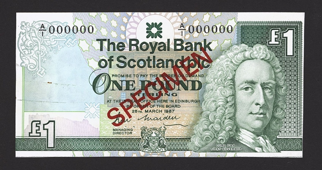The Royal Bank of Scotland, specimen £1, ND (1987-90), serial number A/1 000000, Maiden signature