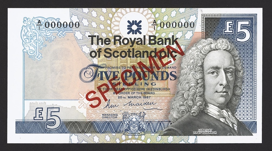 The Royal Bank of Scotland, specimen £5, ND (1987-88), serial number A/1 000000, (PMS RB86, Pick 347s), uncirculated