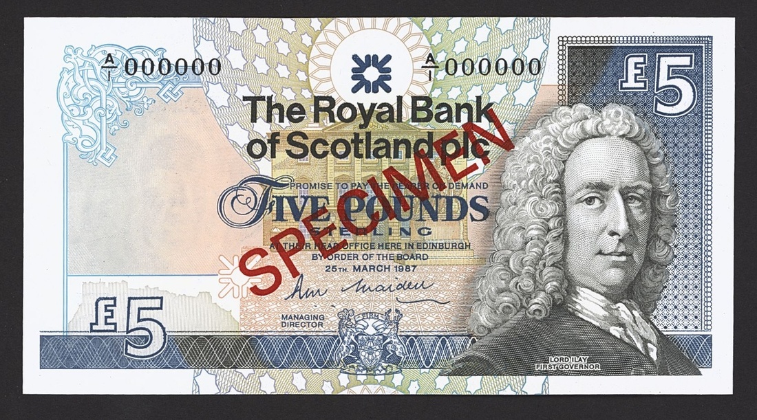 The Royal Bank of Scotland, specimen £5, ND (1987-88), serial number A/1 000000, (PMS RB86, Pick 347s), uncirculated
