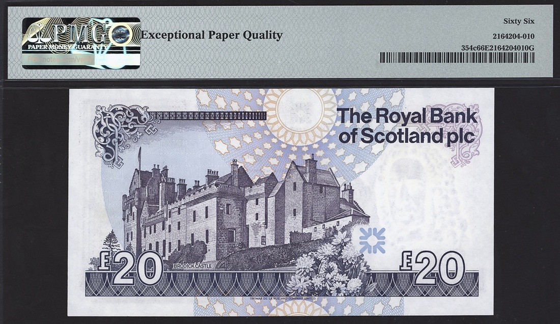 Royal Bank of Scotland, 20 pounds, 1999, serial number B/18 018238, (Pick 354c), in PMG holder 66 EPQ Gem Uncirculated