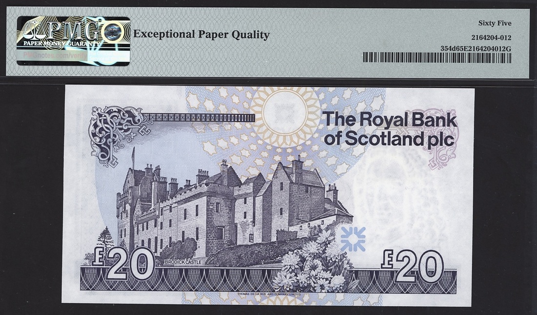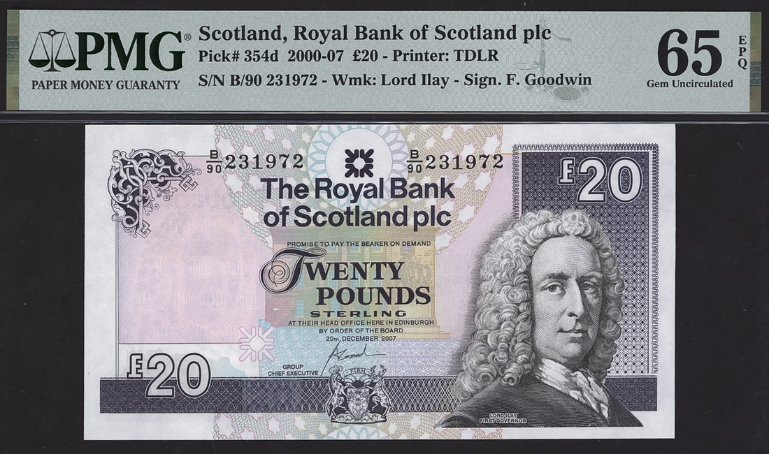 Royal Bank of Scotland, 20 pounds, 2000-07, serial number B/90 231972, (Pick 354d), in PMG holder 65 EPQ Gem Uncirculated