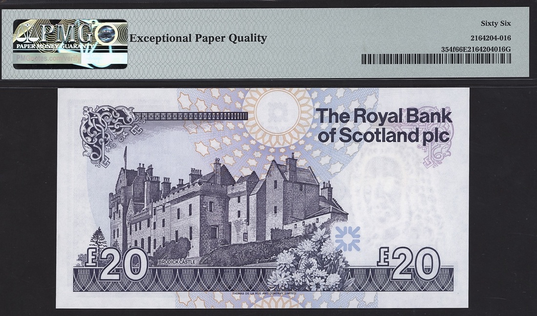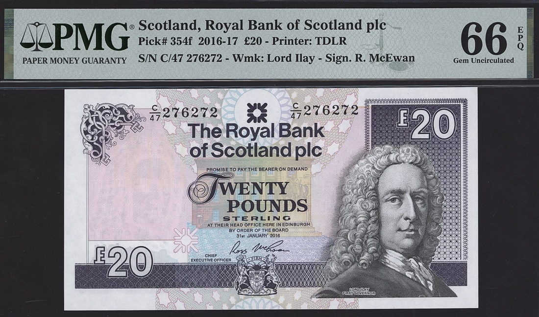 Royal Bank of Scotland, 20 pounds, 2016-17, serial number C/47 276272, (Pick 354f), in PMG holder 66 EPQ Gem Uncirculated