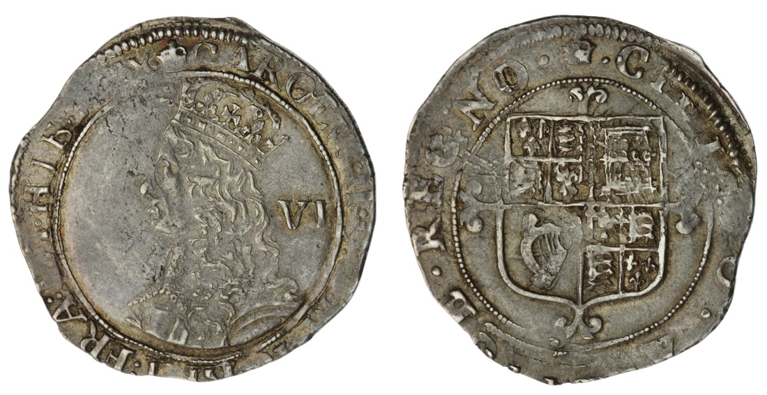 Charles II (1660-1685), Third Hammered Issue, Sixpence, 1660-1662, crowned bust left, value behind, rev. square-topped shield over cross moline, 3.11g, 11h, m.m. crown (Bull 319; ESC 1510; North 2767; Spink 3323), some metal stressing and flatness to legends, the G and O to REGNO double struck, otherwise with pleasing toning in parts, very fine