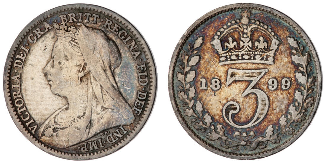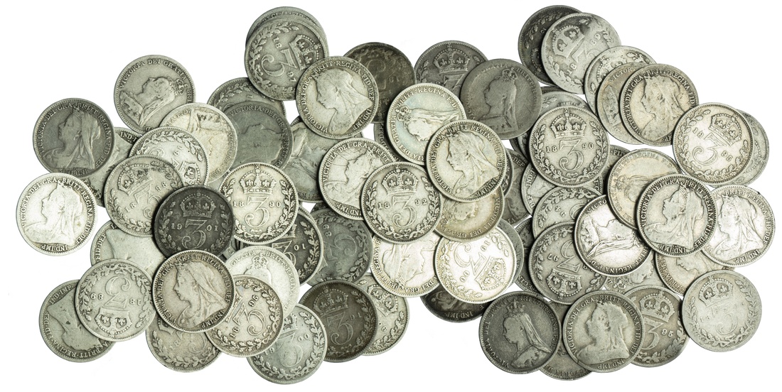 Victoria (1837-1901), Threepences (81), 'Jubilee' Threepence, 1887 (3); 1889 (9 ); 1890 (3); 1891 (9); 1892 (3); 1893, the rarer Jubilee type (Spink 3931); 'Old Head' Threepence, 1893 (2); 1894 (4); 1895 (7); 1896 (2); 1897 (8); 1898 (7); 1899 (7); 1900 (9); 1901 (6) (Spink 3942), variably poor to fair (81)