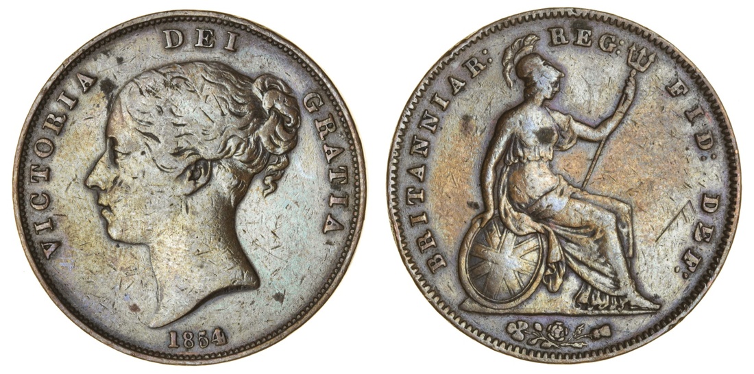 Victoria (1837-1901), Penny, 1854 over 3, PT, reads DEF:, 18.68g, 12h (Adams 123; Pywell-Phillips -; BMC Peck 1505; S.3948), lightly cleaned with surface marks, otherwise a bolder fine