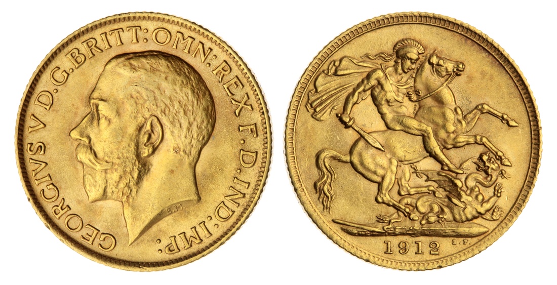 (g) George V (1910-1936), Sovereign, 1912, bare head left, rev. St George and dragon, milled edge, 12h, 7.98g (Marsh 214; Spink 3996), a touch of rub to the higher points, yet still lustrous and with a pleasing red tone, very fine