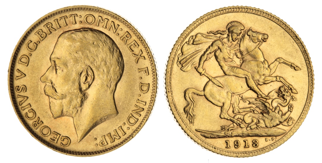 (g) George V (1910-1936), Sovereign, 1913, bare head left, rev. St George and dragon, milled edge, 12h, 7.97g (Marsh 215; Spink 3996), a handful of light contact marks, to otherwise lustrous surfaces, about extremely fine