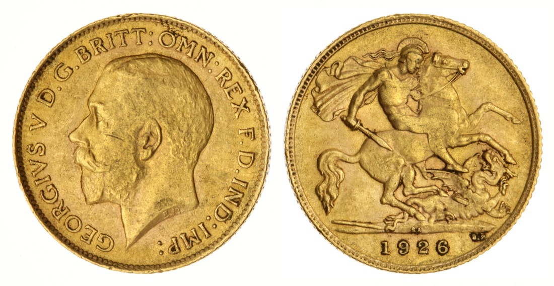 (g) George V (1910-1936), Half Sovereign, 1926 SA, bare head left, rev. St George and dragon, milled edge, 12h, 3.99g (Marsh 543; Spink 4010), scratch to cheek and a handful of other contact marks, including to edge at 12 o'clock, otherwise with hints of residual lustre in legend, about very fine