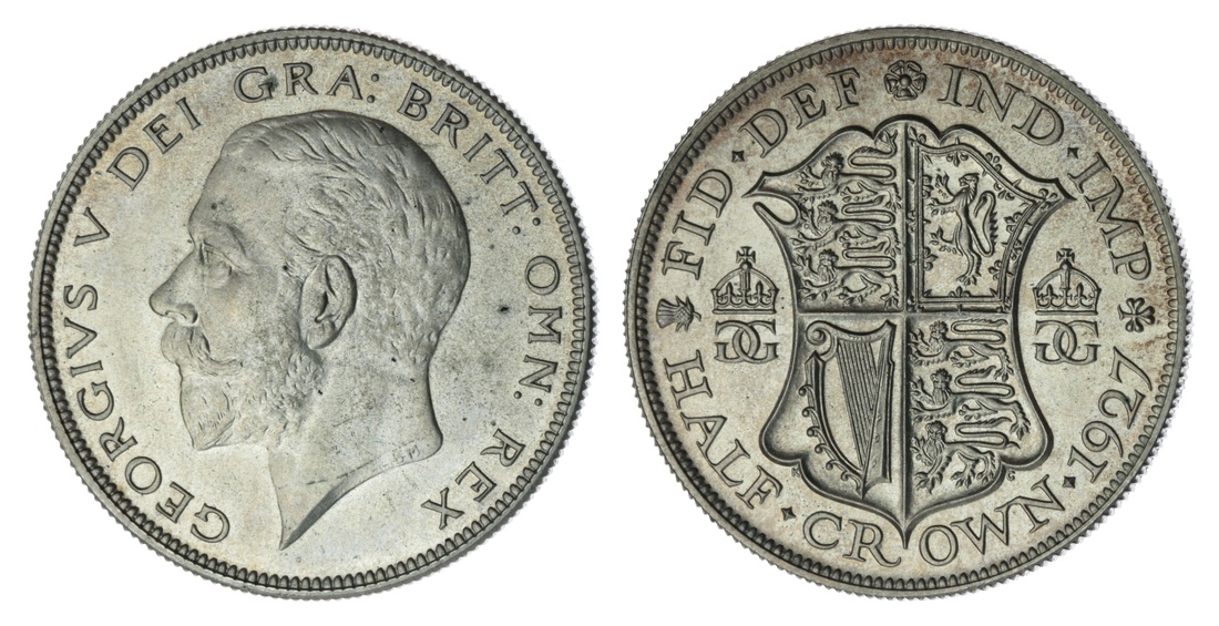 George V (1910-1936), Fourth Coinage, Proof Halfcrown, 1927, bare head left, rev. shield, milled edge, 1h, 14.13g (ESC 776; Bull 3732; Spink 4037), a few specks of verdigris to otherwise brilliant surfaces under some frostiness, extremely fine