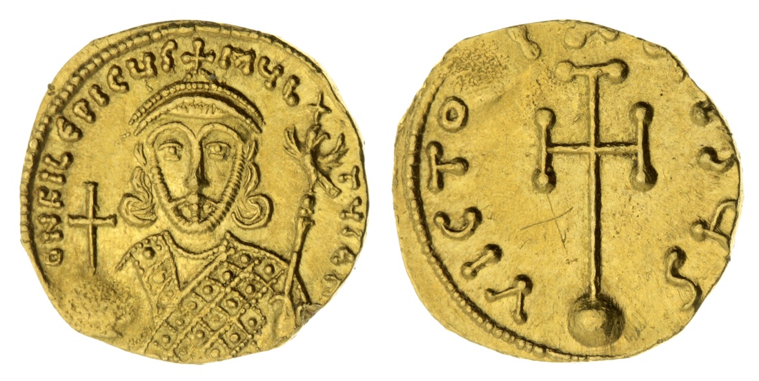 Byzantium, Philippicus (Bardanes) (711-713), AV Semissis, Constantinopolis, ON FILEPICUS MUL-TUS AN, crowned and draped bust facing, holding globus cruciger and eagle-tipped sceptre, rev. VICTORIA AUGUS, cross potent on globus, 2.12g, 6h (MIB 5; Sear 1451), some die clashing, otherwise bright and lustrous, a pleasing extremely fine, rare