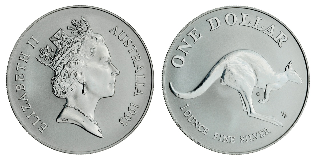 Australia, Elizabeth II (1952-2022), Silver Dollar, .999 silver, 1993, crowned bust right rev. Kangaroo with denomination above, milled edge, 12h, 31.635g, brilliant, as struck; 'The Holey Dollar and Dump Proof Set', 1988, Silver Proof Dollar, milled edge, 12h, 31.92g; Silver Proof 25 Cents, plain edge, 12h, 8.12g, both lightly toned, brilliant, as struck (3)