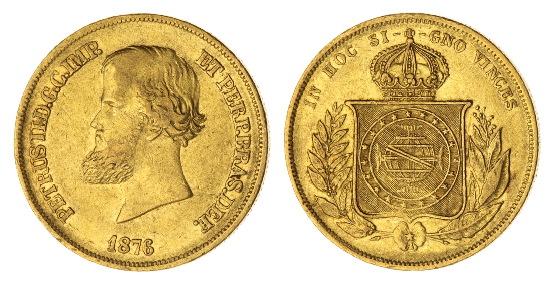 (g) Brazil, Pedro II (1831-1889), 10,000 Reis, 1876, milled edge, 6h, 8.91g (Fr 122; KM 467), wiped and bagmarked, about very fine