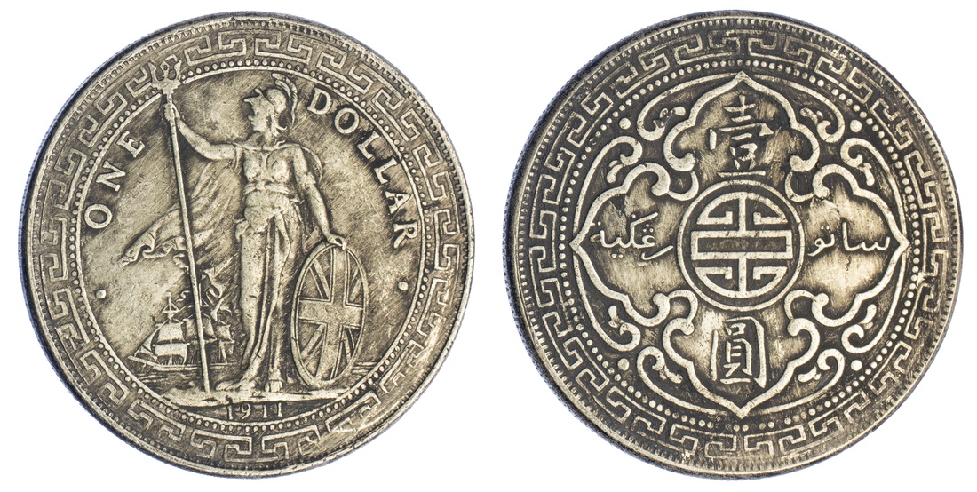 (x) British Overseas Territories, Hong Kong and Strait Settlements, George V (1910-1936), Trade Dollar, 1911, Bombay, Britannia standing, rev. Chinese symbol flanked by denomination