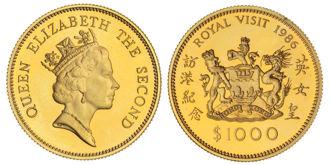 (g) Hong Kong, Elizabeth II (1952-1997), Commemorative 'Royal Visit' Gold Proof 1000-Dollars, 1986, QUEEN ELIZABETH THE SECOND, crowned head right, rev. ROYAL VISIT 1986, crowned arms, edge milled, 16.23g, 12h (KM 57; Fb. 13), light fingermarks, otherwise lightly toned, about brilliant uncirculated