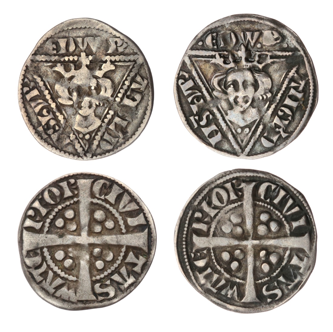 Ireland, Edward I (1272-1307), Pennies, Waterford, Type 1b (2), crowned bust facing, in triangle, rev. CIVITAS WATERFOR, long cross, trefoil of pellets in angles, 1.37g, 5h, fair to fine; another, similar, 1.43g, 7h, toned, near very fine (2)