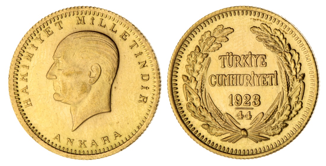 (x) Turkey, Republic, 100 Kurush, 1967, head of President Ataturk left, rev. legend and date within wreath, edge milled, 12h, 7.22g (KM 855; Fr 205) fingermarked, yet with proof-like surfaces beneath, bolder very fine