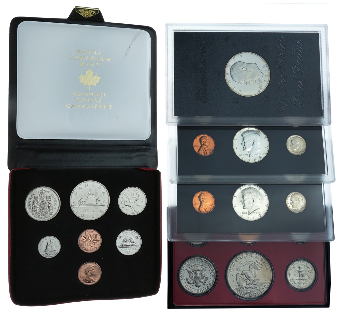 United States of America and Canada Proof Sets (5) | United States of America, Proof Set, 1968; 1969; 1973; Proof Dollar, 1972; Canada, Proof Set, 1972, all brilliant as struck (5)