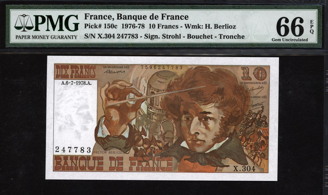 (x) Banque de France, 10 francs, 1978, serial number X.304 247783, (Pick 150c), in PMG holder 66 EPQ Gem Uncirculated
