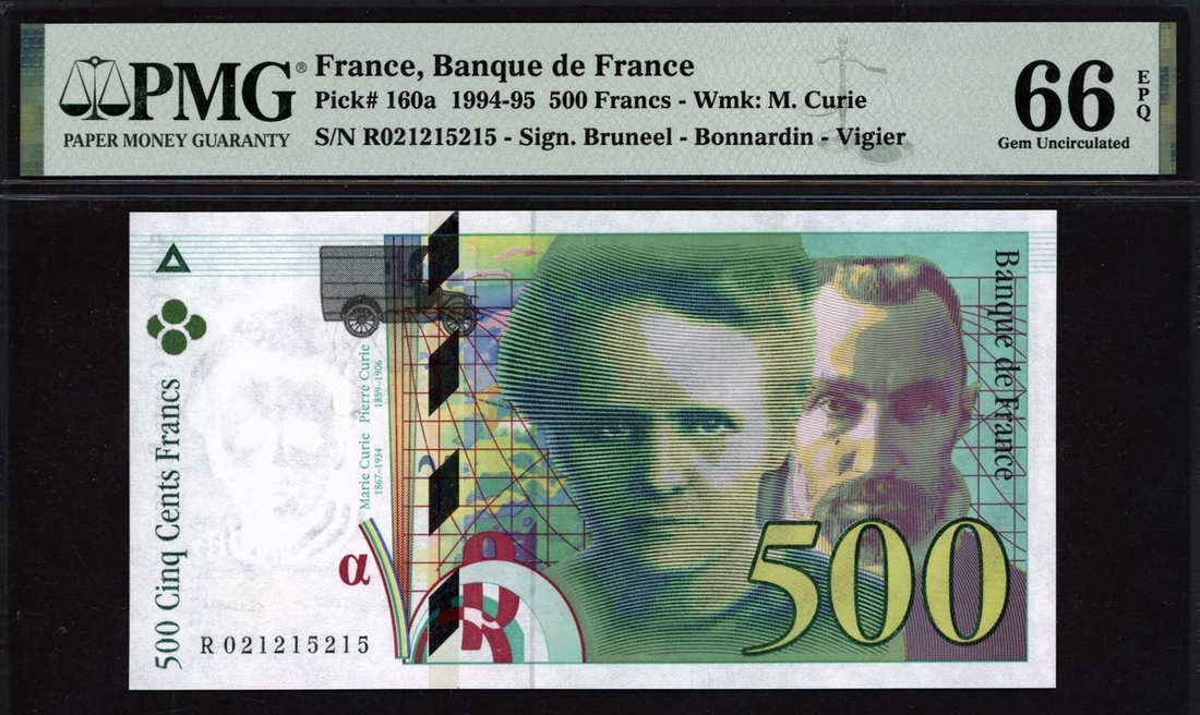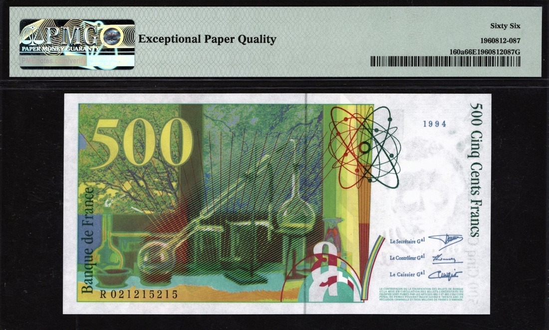 (x) Banque de France, 500 francs, 1994-95, serial number R021215215, (Pick 160a), in PMG holder 66 EPQ Gem Uncirculated